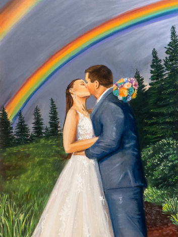 On your wedding day, I’ll arrive early to set up my easel and materials at the venue. I’ll find the perfect spot that offers a great view of the scene I’ll be painting, ensuring I capture the essence of your vision. If your ceremony is outside, I will move my supplies to the reception area to continue on your piece.